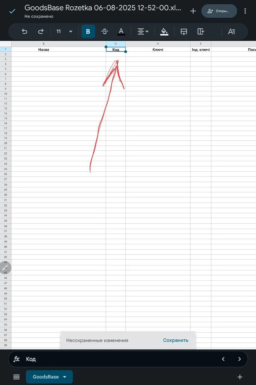 1. Додати до кожного товару Код товару, який вказаний або у адмінці, або на сторінці картки товару (див. скріншот);2. Перезавантажити (поки що по частинам, не всю одразу) базу товару зі значенням "Код" у таблиці (див. скріншот).